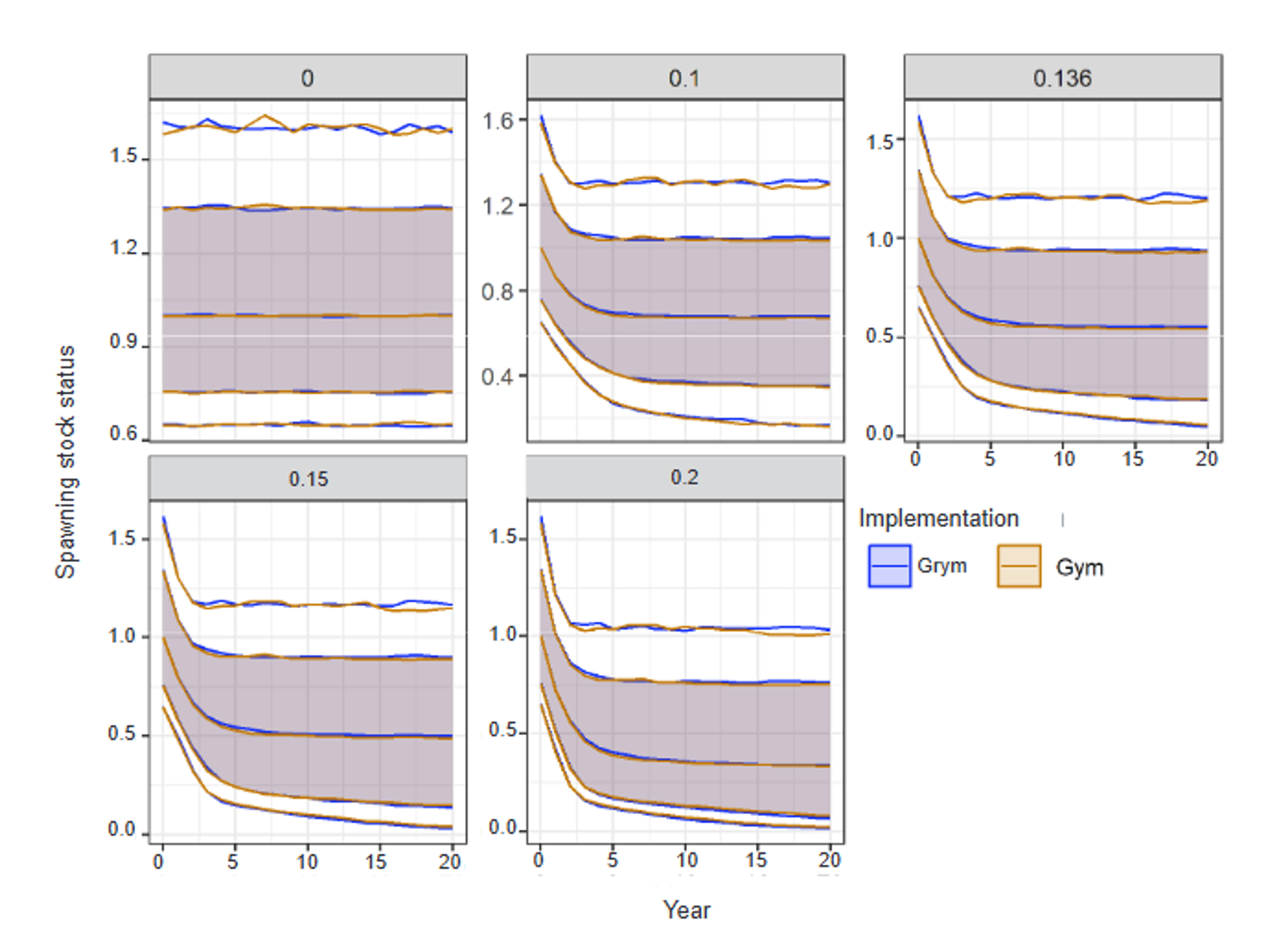 The new Grym software package represents a successful modernization of fisheries assessment tools, replacing the outdated FORTRAN-based GYM software with an open-sourcesoftware written in the programming language R. This upgrade maintains all essential functionality for fisheries stock projections while delivering improved flexibility and computational precision.